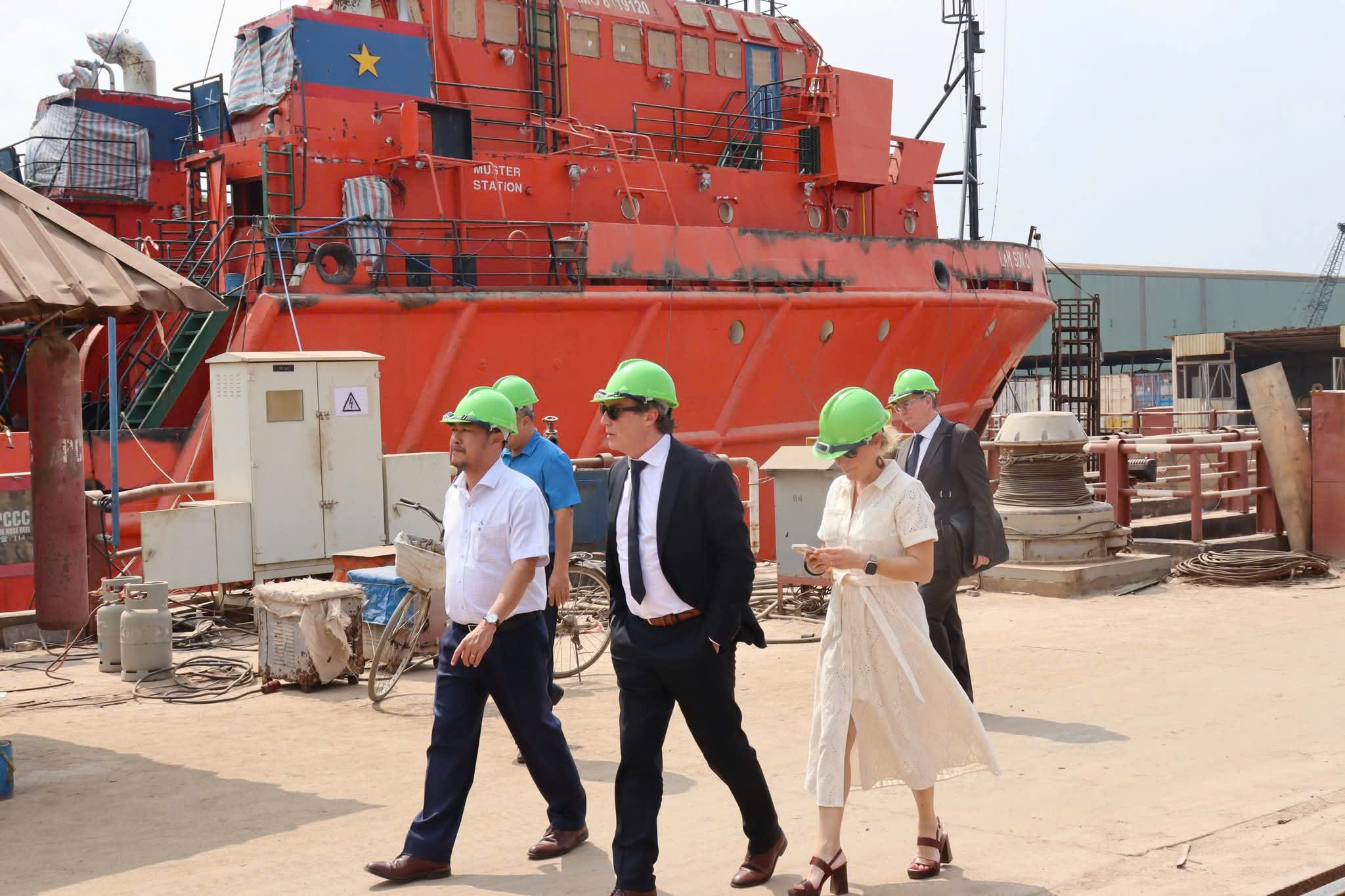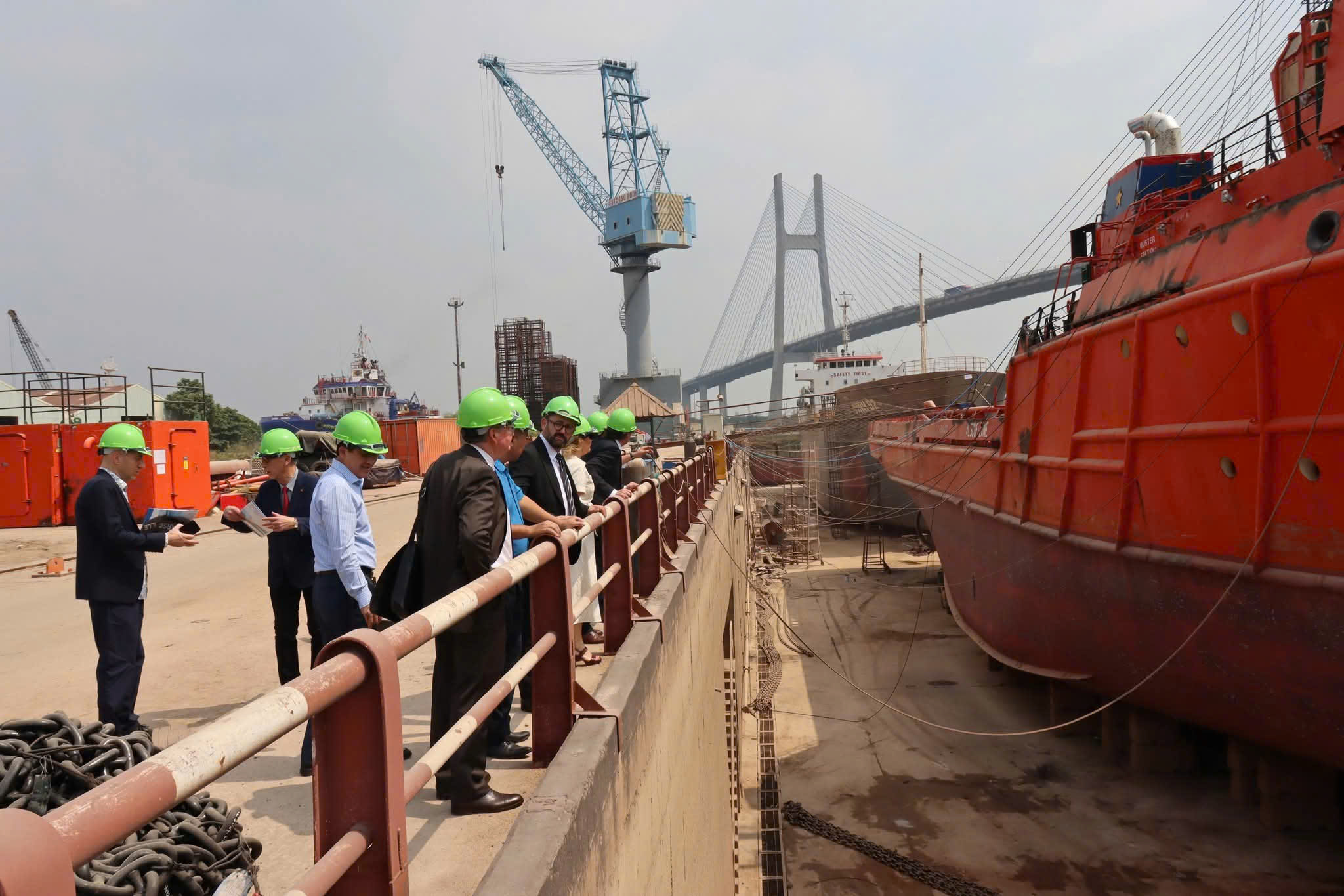 Đoàn đại biểu Lãnh sự quán Việt Nam tại Marseille bày tỏ sự quan tâm và đánh giá cao tiềm năng, kinh nghiệm cũng như nỗ lực vượt khó của Công ty trong bối cảnh ngành công nghiệp tàu thủy đang chịu nhiều tác động từ thị trường và yêu cầu chuyển đổi xanh. Các thành viên trong Đoàn cũng trao đổi, gợi mở khả năng kết nối doanh nghiệp với các đối tác, tổ chức, hiệp hội hàng hải tại khu vực Marseille – một trung tâm hàng hải lớn của Pháp và châu Âu. Trong khuôn khổ chương trình, Đoàn đã đi tham quan khu vực nhà xưởng, bến bãi và dây chuyền sản xuất của Công ty, trực tiếp tìm hiểu quy trình thi công, sửa chữa tàu và điều kiện làm việc của người lao động.