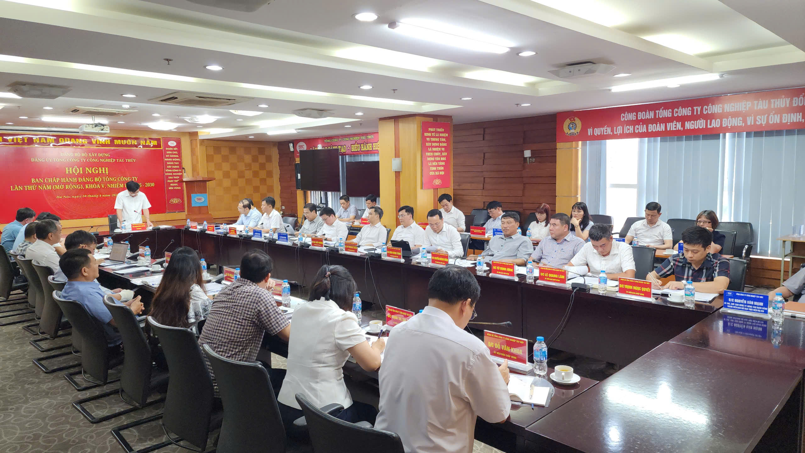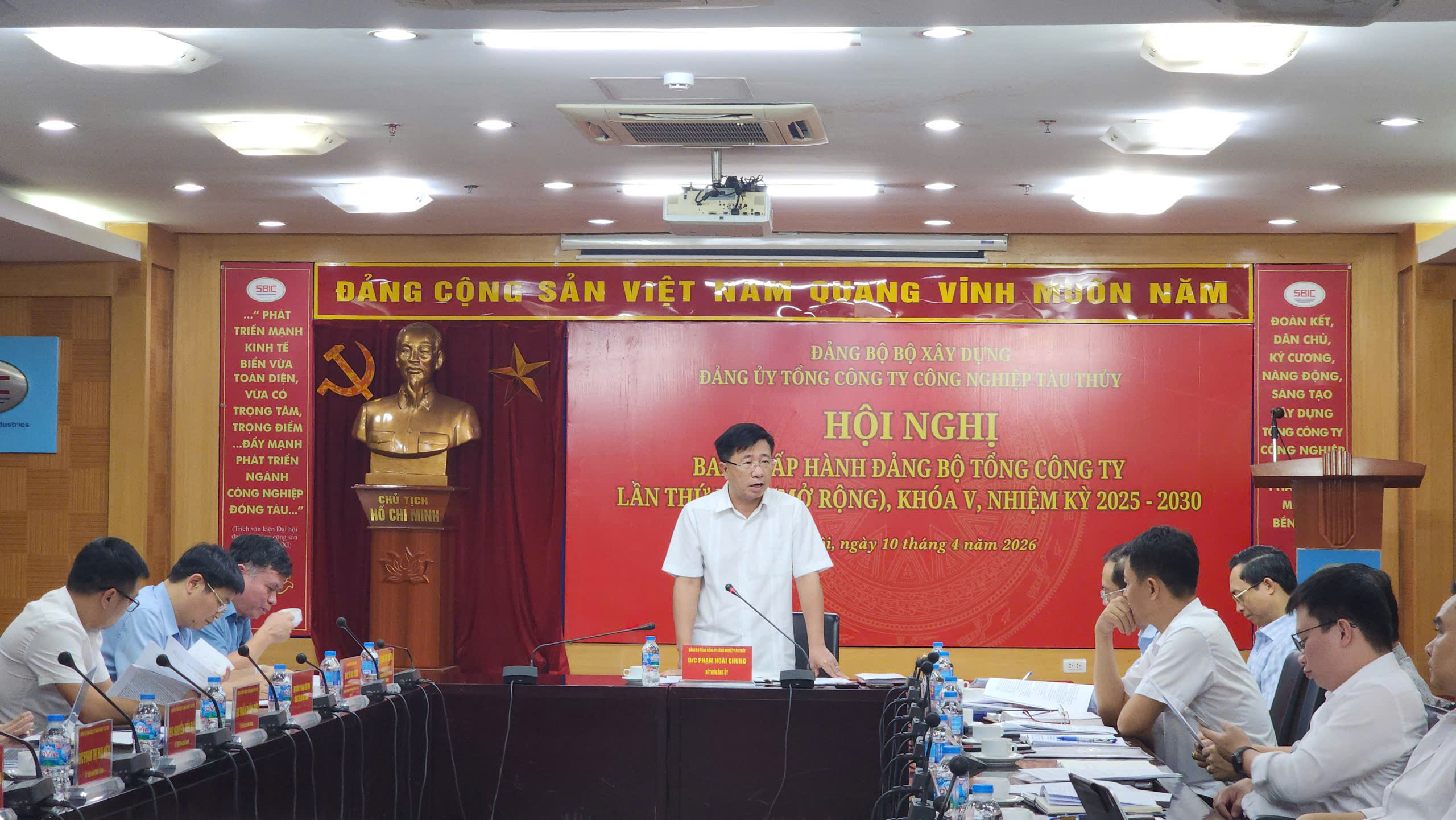 Thực hiện Chương trình công tác toàn khóa, nhằm đánh giá kết quả công tác quý I và đề ra phương hướng nhiệm vụ Quý II.2026. Ngày 10/6/2026 tại Trụ sở Tổng công ty, Ban Chấp hành Đảng bộ Tổng công ty khóa V, nhiệm kỳ 2025-2030 đã tổ chức Hội nghị lần thứ V (mở rộng). Dự và chỉ đạo Hội nghị có các đồng chí: Đoàn Huy Khương, UVBCH Đảng bộ - Phó Trưởng Ban Thường trực Ban Tổ chức Đảng ủy Bộ Xây dựng; đồng chí Vũ Hải Đăng, Chuyên viên chính Vụ theo dõi công tác phòng, chống tham nhũng, lãng phí, tiêu cực (Vụ V) Ban Nội chính Trung ương. Tham dự Hội nghị có các đồng chí Ủy viên Ban Chấp hành, Ủy viên UBKT Đảng ủy Tổng công ty, các đồng chí Thành viên HĐTV Tổng công ty, đại diện Đảng bộ Công ty TNHH MTV đóng tàu Phà Rừng, Công ty CP đóng tàu Sông Cấm, Công ty TNHH MTV đóng tàu Bạch Đằng, Công ty TNHH MTV Tài chính Công nghiệp tàu thủy, Thưởng trực Công đoàn, Đoàn thanh niên, đại diện lãnh đạo các cơ quan tham mưu giúp việc Đảng ủy, Văn phòng, Ban Đổi mới doanh nghiệp Tổng công ty.