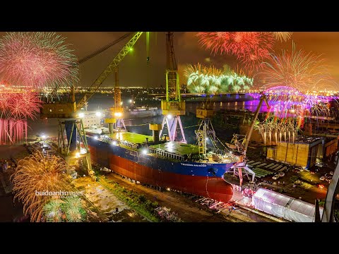 Toàn cảnh hạ thủy tàu hàng lớn nhất đóng tại Việt Nam