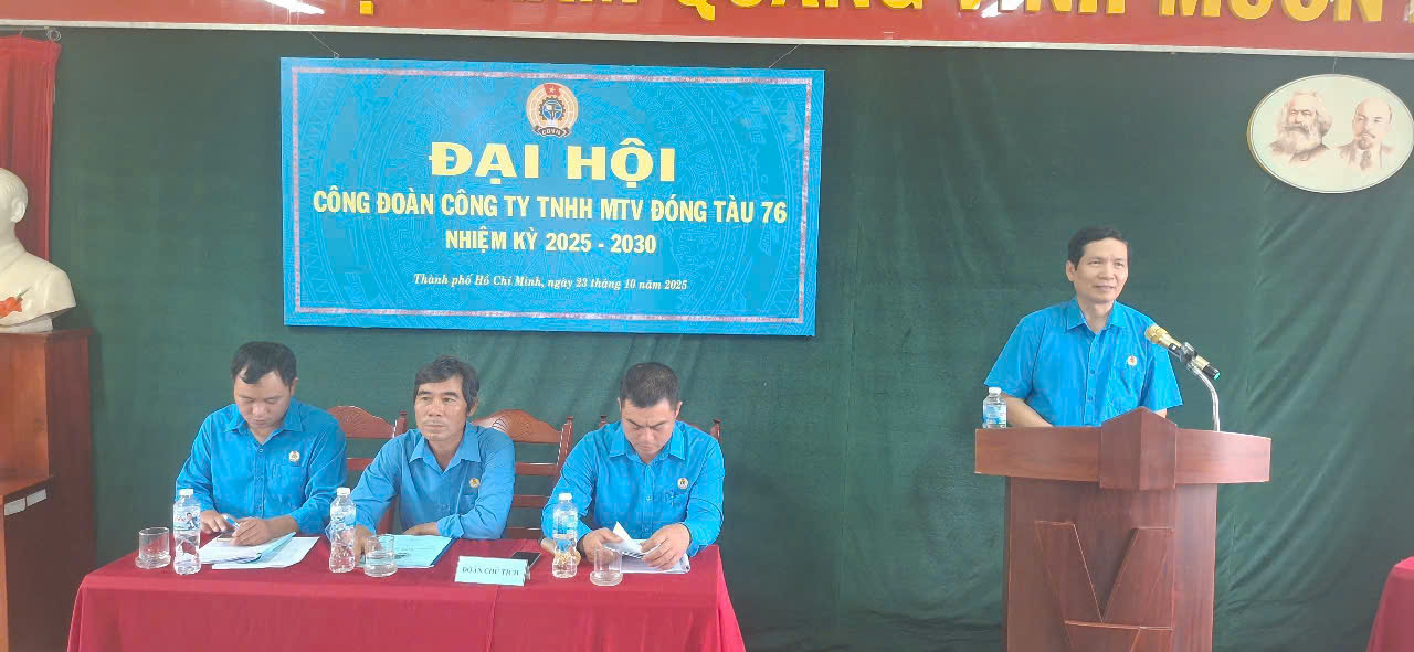 Đại hội Công đoàn nhiệm kỳ 2025–2030 được tổ chức ngày 23, 24/10/2025 tại TP. Hồ Chí Minh của các đơn vị Công ty đóng tàu 76, Công ty CNTT Sài Gòn và Công ty đóng tàu và Công nghiệp hàng hải Sài Gòn đã diễn thành công tốt đẹp.