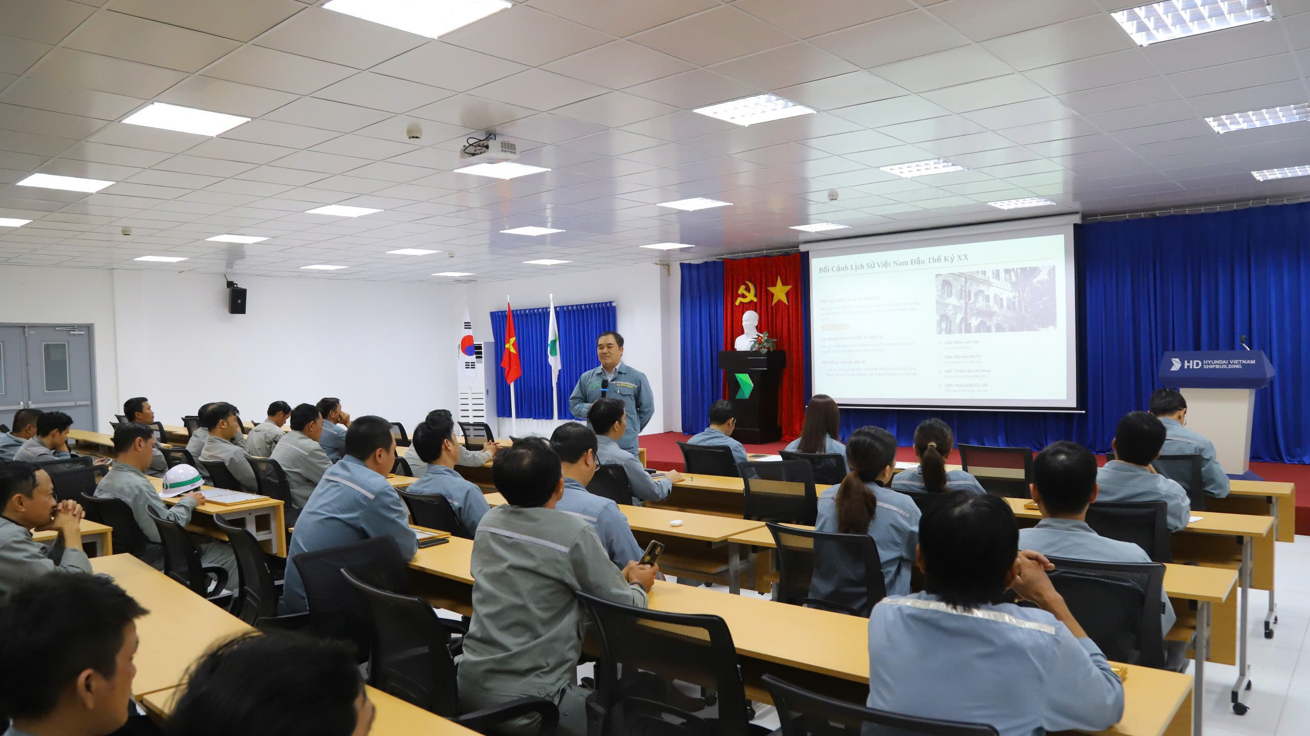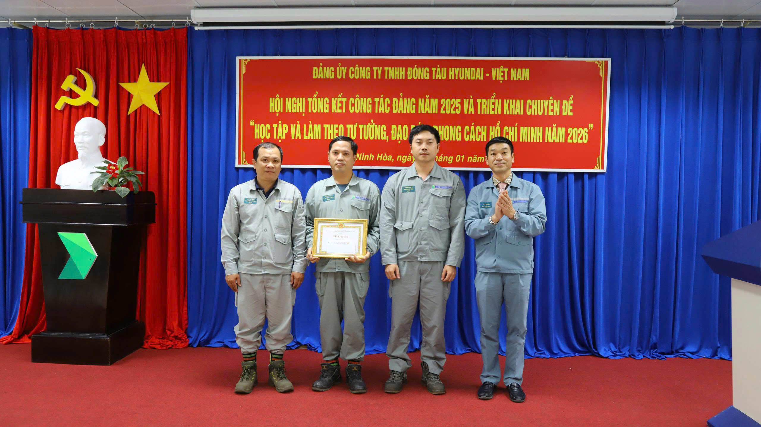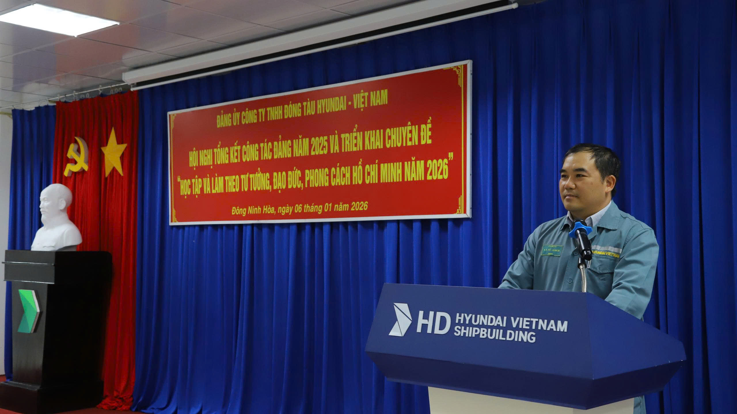 Chiều ngày 06/01/2026, Đảng ủy Công ty đã tổ chức “Hội nghị tổng kết công tác Đảng năm 2025, triển khai chuyên đề Học tập và làm theo tư tưởng, đạo đức, phong cách Hồ Chí Minh năm 2026” với sự tham dự của toàn thể đảng viên trong Đảng bộ. Tham dự Hội nghị có đồng chí Lê Văn Toàn - Bí thư Đảng ủy, Phó Tổng Giám đốc Công ty cùng các đồng chí trong Ban Chấp hành Đảng bộ, cấp ủy các chi bộ và toàn thể đảng viên. Phát biểu khai mạc và trình bày báo cáo tại Hội nghị, đồng chí Bí thư Đảng ủy nhấn mạnh: năm 2025, trong bối cảnh còn nhiều khó khăn, thách thức, Đảng bộ Công ty đã phát huy tốt vai trò hạt nhân chính trị, lãnh đạo cán bộ, đảng viên và người lao động đoàn kết, nỗ lực, hoàn thành xuất sắc các nhiệm vụ được giao. Đội ngũ đảng viên luôn tiên phong, gương mẫu trong lao động sản xuất, góp phần nâng cao năng suất, chất lượng và hiệu quả công việc. Hoạt động sản xuất kinh doanh của Công ty tiếp tục đạt kết quả ấn tượng. Doanh thu năm 2025 đạt 691 triệu USD, tương đương gần 18 nghìn tỷ đồng; thực hiện đặt ky 15 tàu, bàn giao 17 tàu với tải trọng từ 50.000 đến 115.000 tấn. Doanh nghiệp tiếp tục mở rộng đầu tư, hướng tới đa dạng hóa sản phẩm, đồng thời thực hiện tốt nghĩa vụ với Nhà nước, bảo đảm việc làm, thu nhập, phúc lợi cho người lao động, giữ vững an ninh trật tự và tích cực tham gia các hoạt động an sinh xã hội. Công tác chính trị tư tưởng được Đảng bộ chú trọng triển khai đồng bộ, hiệu quả. Cán bộ, đảng viên giữ vững bản lĩnh chính trị, chấp hành nghiêm chủ trương, đường lối của Đảng, chính sách, pháp luật của Nhà nước; thực hiện tốt việc học tập và làm theo tư tưởng, đạo đức, phong cách Hồ Chí Minh, góp phần củng cố niềm tin, tạo sự đồng thuận trong toàn doanh nghiệp. Đảng bộ cũng lãnh đạo các tổ chức chính trị - xã hội hoạt động ngày càng hiệu quả. Công đoàn và Đoàn Thanh niên đã phát huy tốt vai trò đại diện, chăm lo đời sống vật chất, tinh thần cho người lao động; tổ chức nhiều phong trào thi đua, sáng kiến cải tiến kỹ thuật, các công trình, phần việc thanh niên thiết thực, góp phần hoàn thành nhiệm vụ sản xuất kinh doanh.