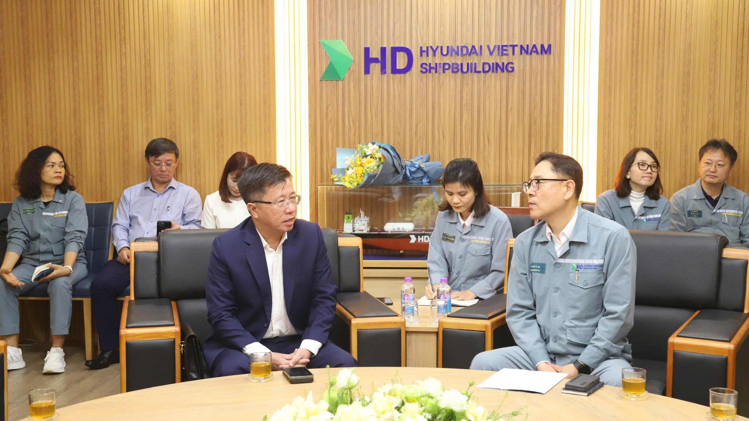 Sáng ngày 03/10, đ/c Phạm Hoài Chung – Bí thư, Chủ tịch Hội đồng thành viên Tổng công ty Công nghiệp tàu thủy (SBIC) cùng đoàn công tác đã đến thăm và làm việc tại Công ty TNHH Đóng tàu HD Hyundai Việt Nam (HVS). Tham gia đoàn công tác có các thành viên Hội đồng thành viên và lãnh đạo các phòng, ban chuyên môn của Tổng công ty. Đón tiếp đoàn SBIC, về phía Công ty HVS có ông Kim Song Hag – Tổng Giám đốc, cùng các Phó Tổng Giám đốc và lãnh đạo các phòng, ban chuyên môn của công ty. Tại buổi làm việc, đại diện Công ty HVS đã báo cáo kết quả hoạt động sản xuất – kinh doanh quý III/2025, trong đó nêu bật các chỉ tiêu tăng trưởng tích cực, tình hình đơn hàng ổn định và việc đảm bảo tiến độ đóng mới, bàn giao tàu cho khách hàng quốc tế. Đồng thời, công ty cũng trình bày kế hoạch sản xuất – kinh doanh năm 2026, tập trung vào việc mở rộng thị trường xuất khẩu, nâng cao năng lực quản lý, đẩy mạnh ứng dụng công nghệ xanh và phát triển bền vững. Bên cạnh đó, hai bên cũng đã trao đổi một số nội dung liên quan đến quá trình tái cấu trúc của Tập đoàn HD Hyundai, hướng tới việc tối ưu hóa chuỗi cung ứng, nâng cao hiệu quả hoạt động và củng cố vị thế của tập đoàn trên thị trường đóng tàu toàn cầu.
