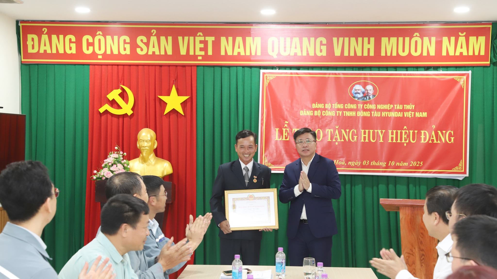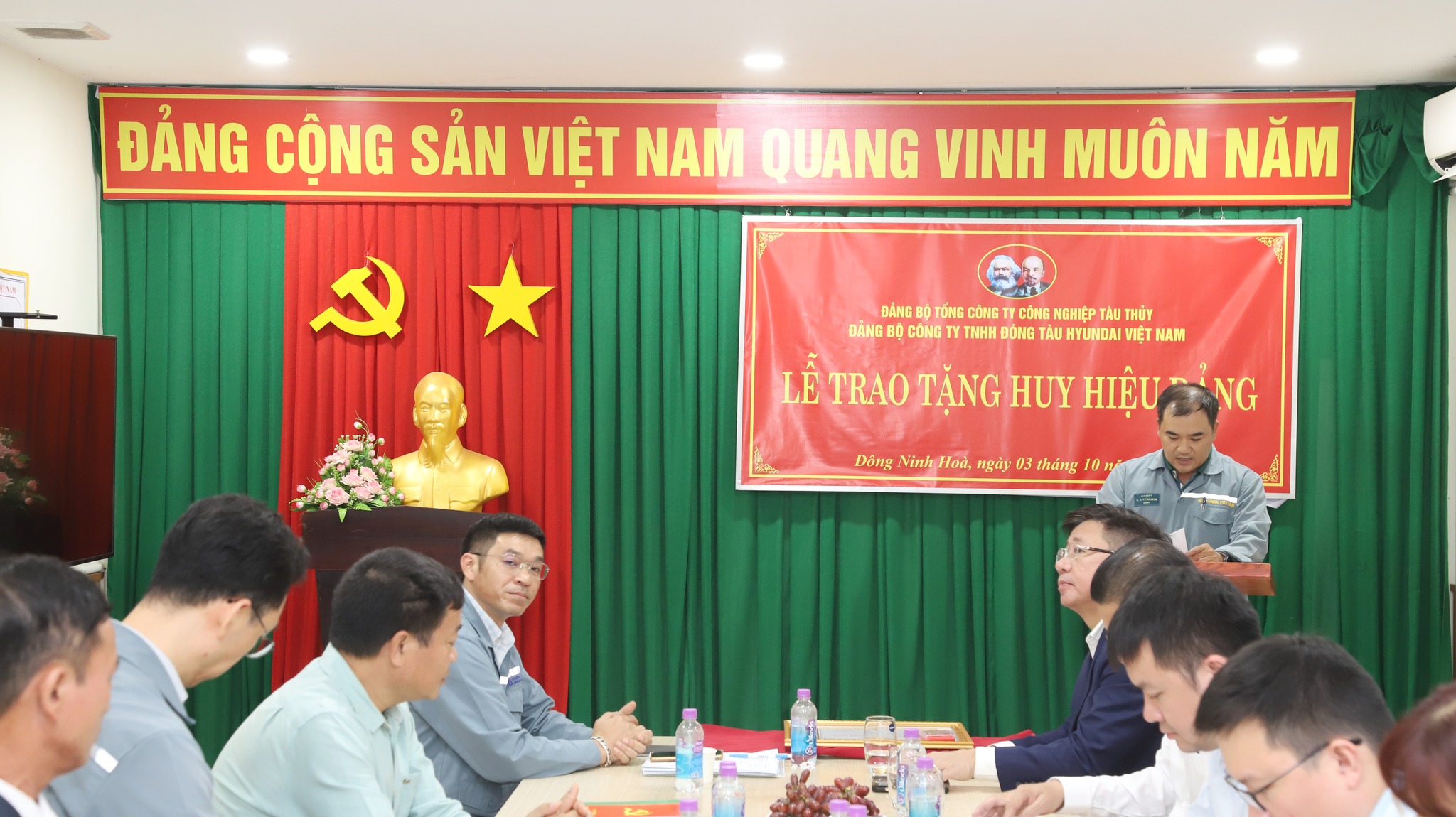 Tại buổi Lễ, đồng chí Nguyễn Thái Vũ - Phó Bí thư Đảng ủy Công ty đã công bố Quyết định trao tặng Huy hiệu Đảng. Thay mặt Ban Chấp hành Đảng bộ Tổng Công ty, đồng chí Phạm Hoài Chung đã trực tiếp trao Huy hiệu Đảng cho đồng chí Nguyễn Ngọc Quý - đảng viên của Công ty.