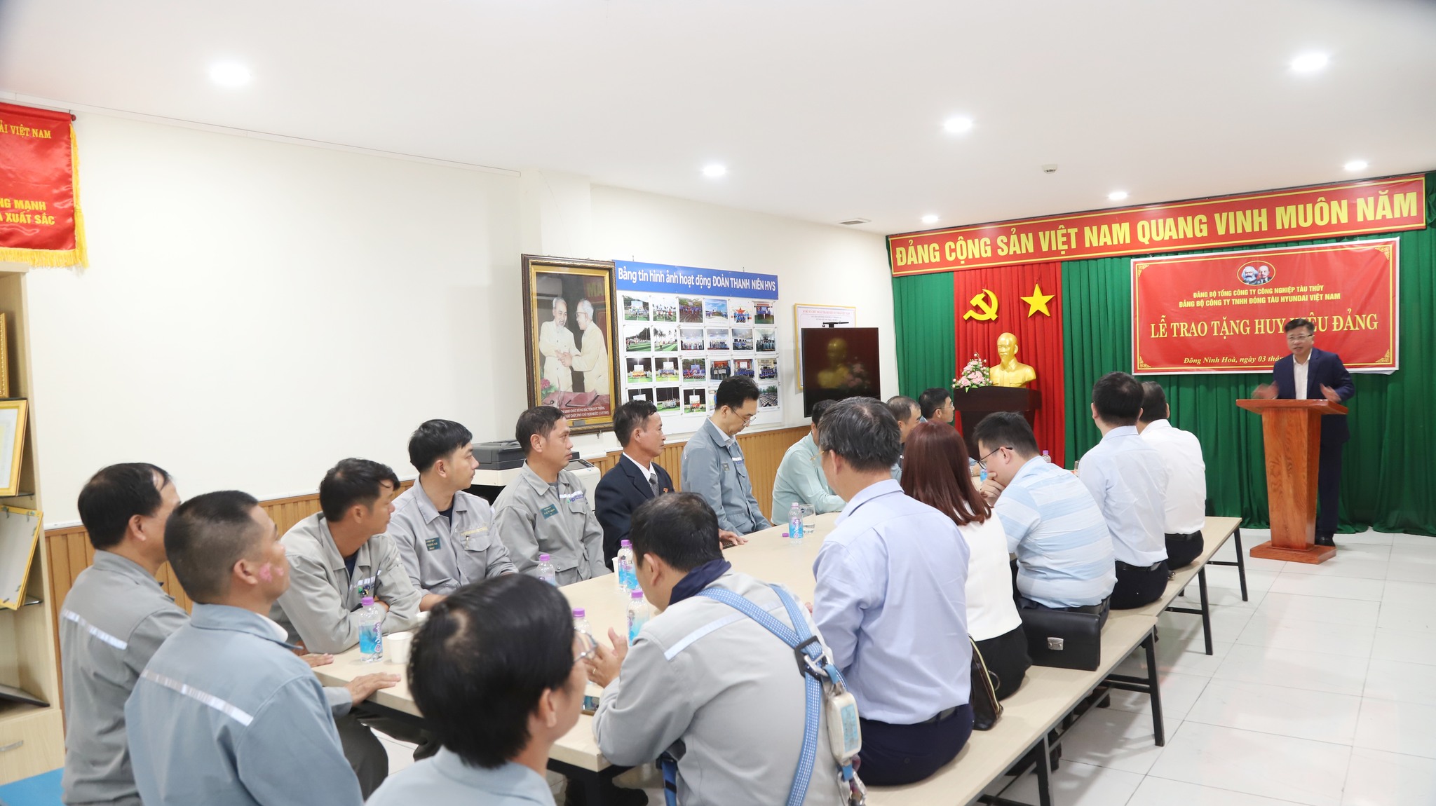 Đồng chí Nguyễn Thái Vũ - Phó Bí thư Đảng ủy Công ty HVS công bố Quyết định trao tặng Huy hiệu Đảng