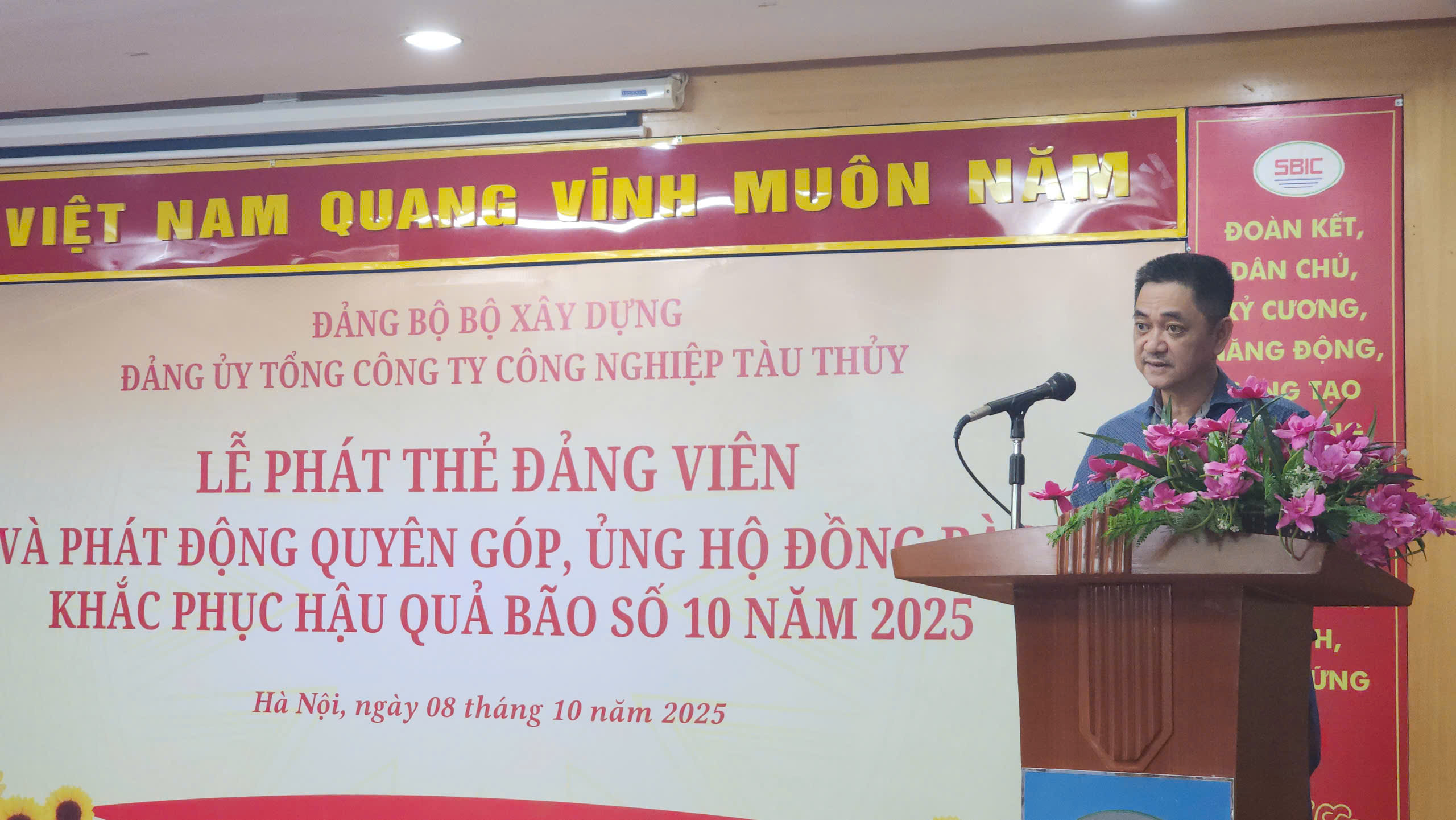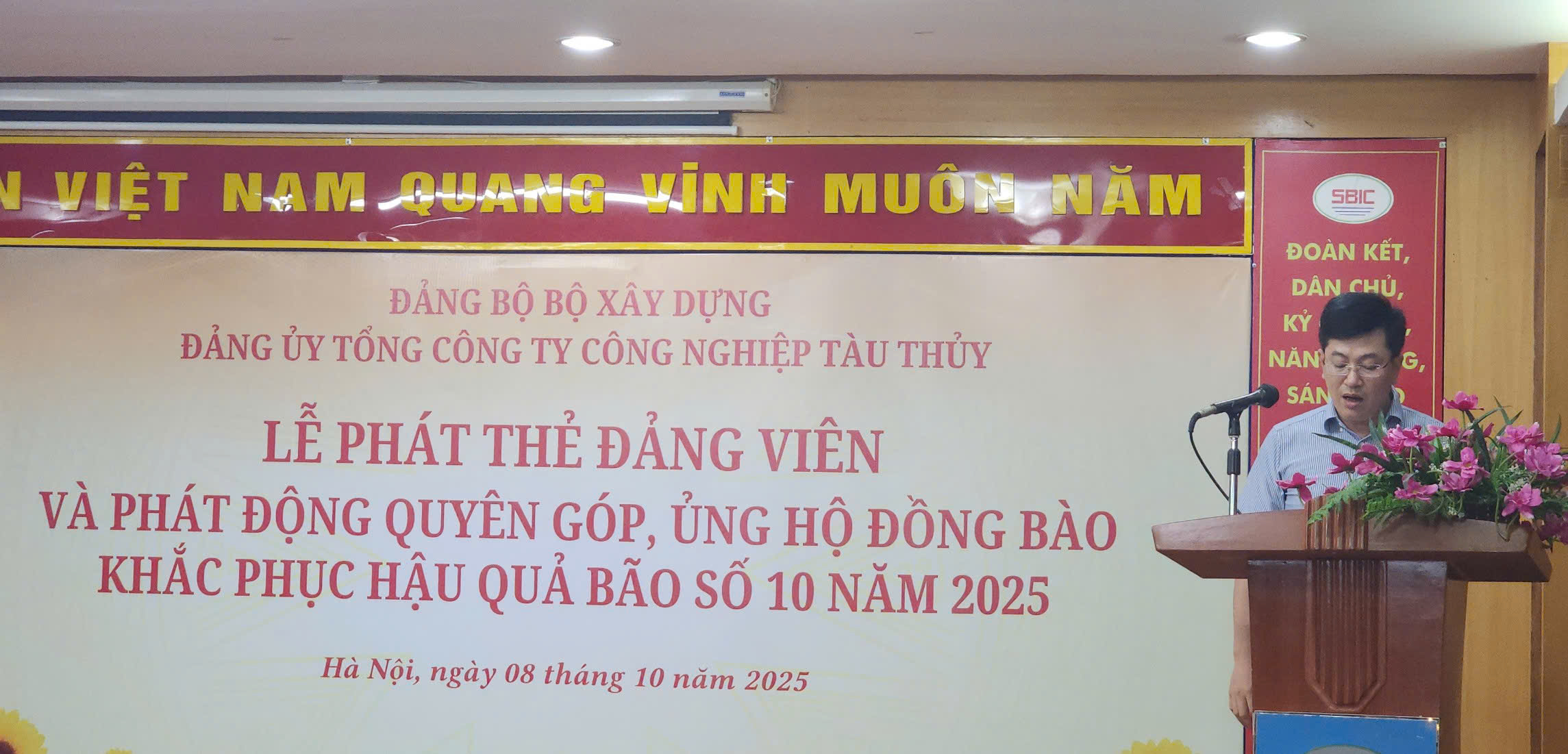 Ngày 8/10/2025, tại trụ sở Tổng Công ty Công nghiệp tàu thủy (SBIC) Đảng ủy Tổng công ty Công nghiệp tàu thủy tổ chức Lễ phát Thẻ đảng viên và phát động quyên góp, ủng hộ đồng bào bị thiệt hại do các cơn bão năm 2025.