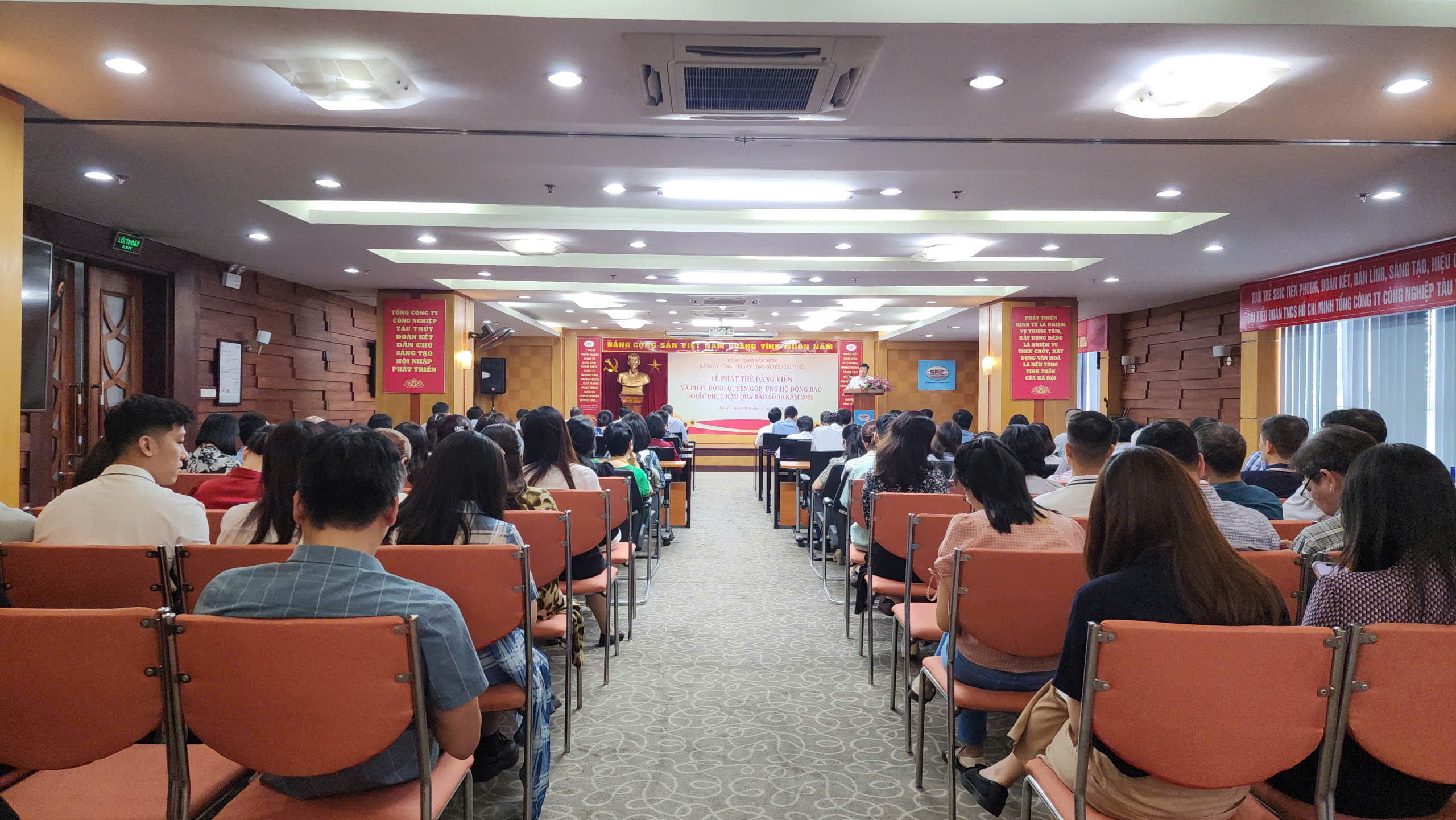 Đồng chí Phạm Hoài Chung - Bí thư Đảng ủy, Chủ tịch Hội đồng thành viên TCty phát động quyên góp, ủng hộ đồng bào lũ lụt