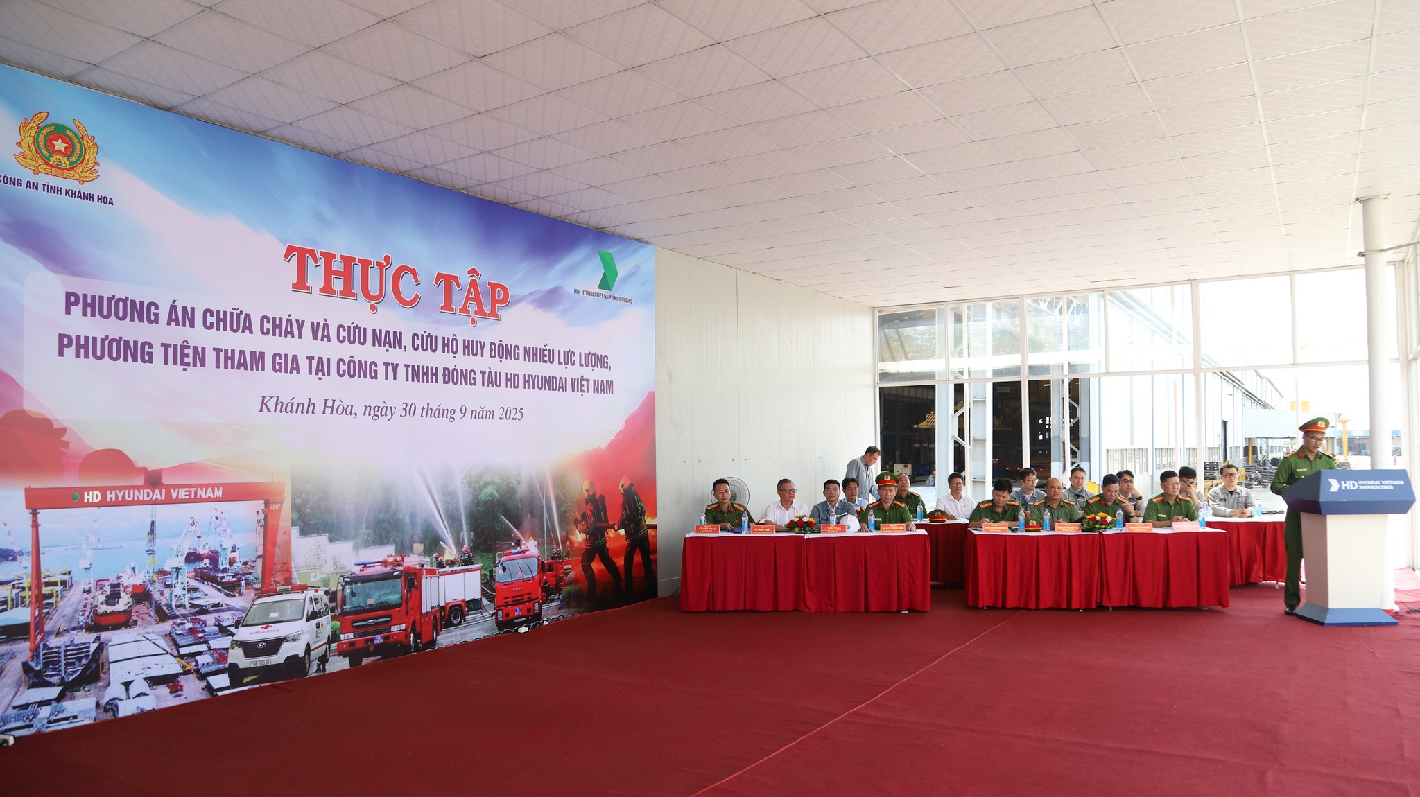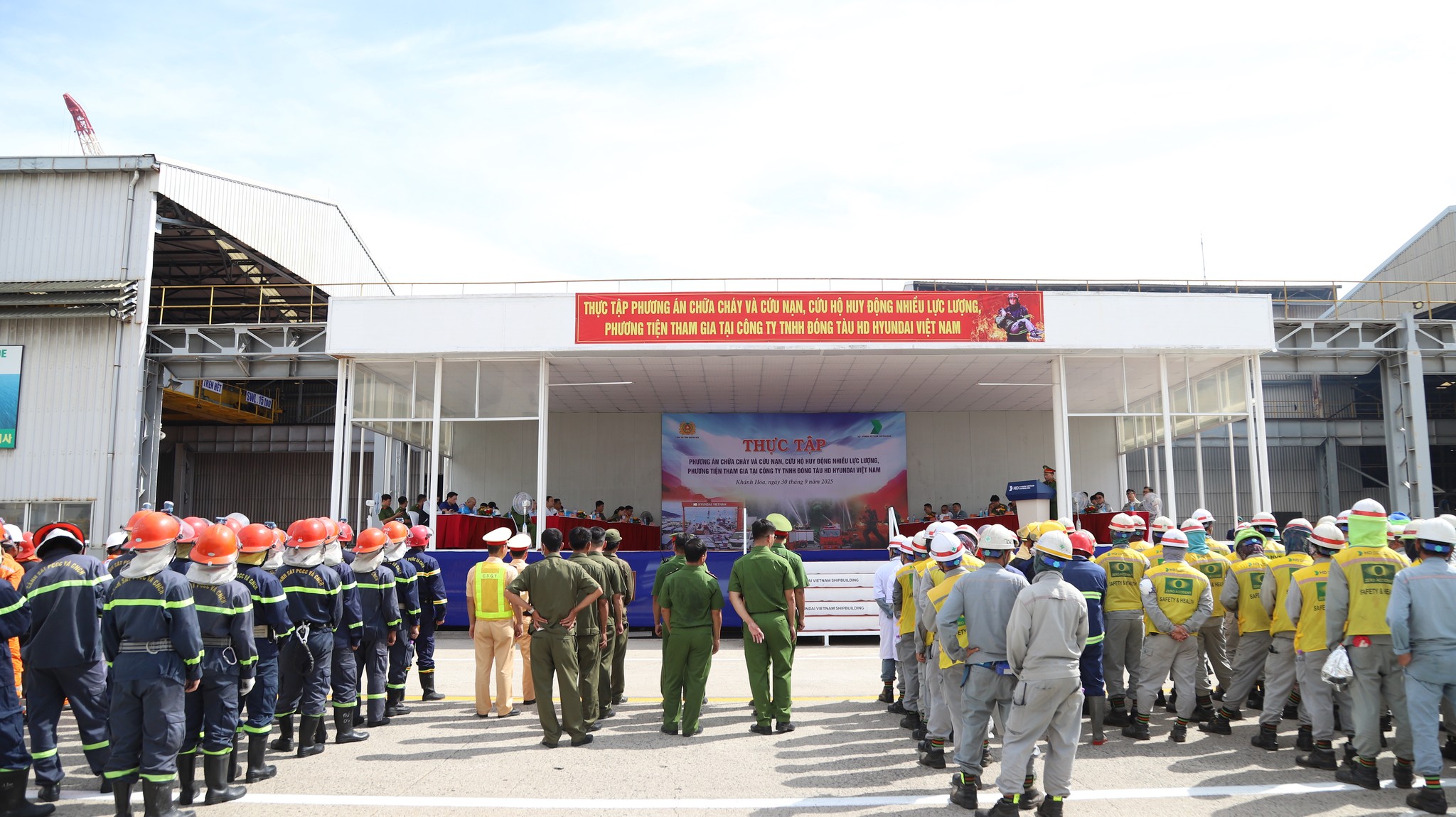 Ngày 30/9/2025, tại Công ty TNHH Nhà máy tàu biển Huyndai - Vinashin (HVS) là một công ty liên doanh giữa tập đoàn Huyndai Hàn Quốc và Tổng Công ty Công nghiệp tàu thủy (SBIC) , Công an tỉnh Khánh Hòa phối hợp với công ty và nhiều đơn vị liên quan tổ chức diễn tập phương án chữa cháy, cứu nạn, cứu hộ quy mô lớn. Gần 400 người và 15 xe chuyên dụng tham gia diễn tập chữa cháy cứu nạn.