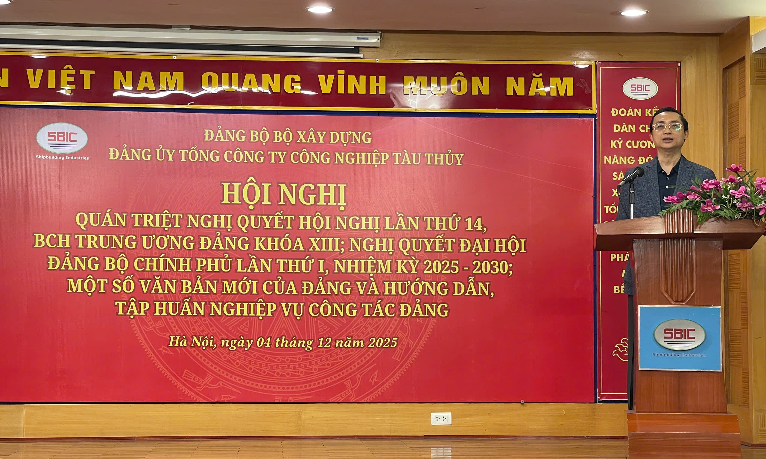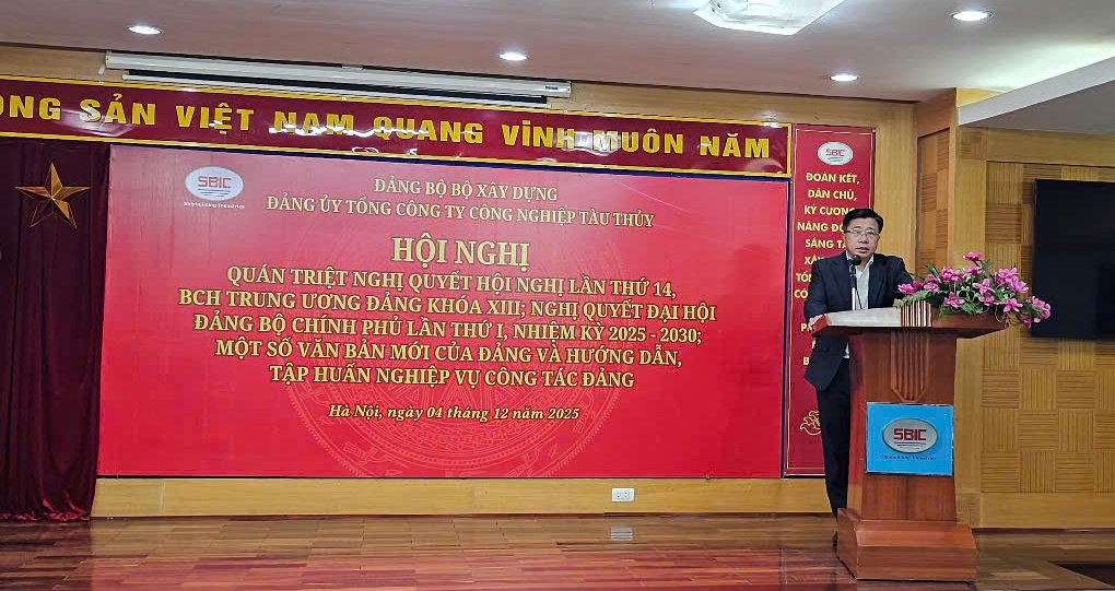 Ngày 04/12/2025, tại trụ sở Tổng Công ty Công nghiệp tàu thủy (SBIC), Đảng ủy Tổng công ty Công nghiệp tàu thủy đã tổ chức Hội nghị quán triệt Nghị quyết Hội nghị lần thứ 14, Ban Chấp hành Trung ương Đảng khóa XIII; Nghị quyết Đại hội Đảng bộ Chính phủ lần thứ I, nhiệm kỳ 2025 - 2030; một số văn bản mới của Đảng và hướng dẫn, tập huấn nghiệp vụ công tác đảng. Hội nghị được tổ chức trực tiếp và kết hợp trực tuyến đến 22 điểm cầu tại các tổ chức đảng trực thuộc Đảng ủy Tổng công ty.