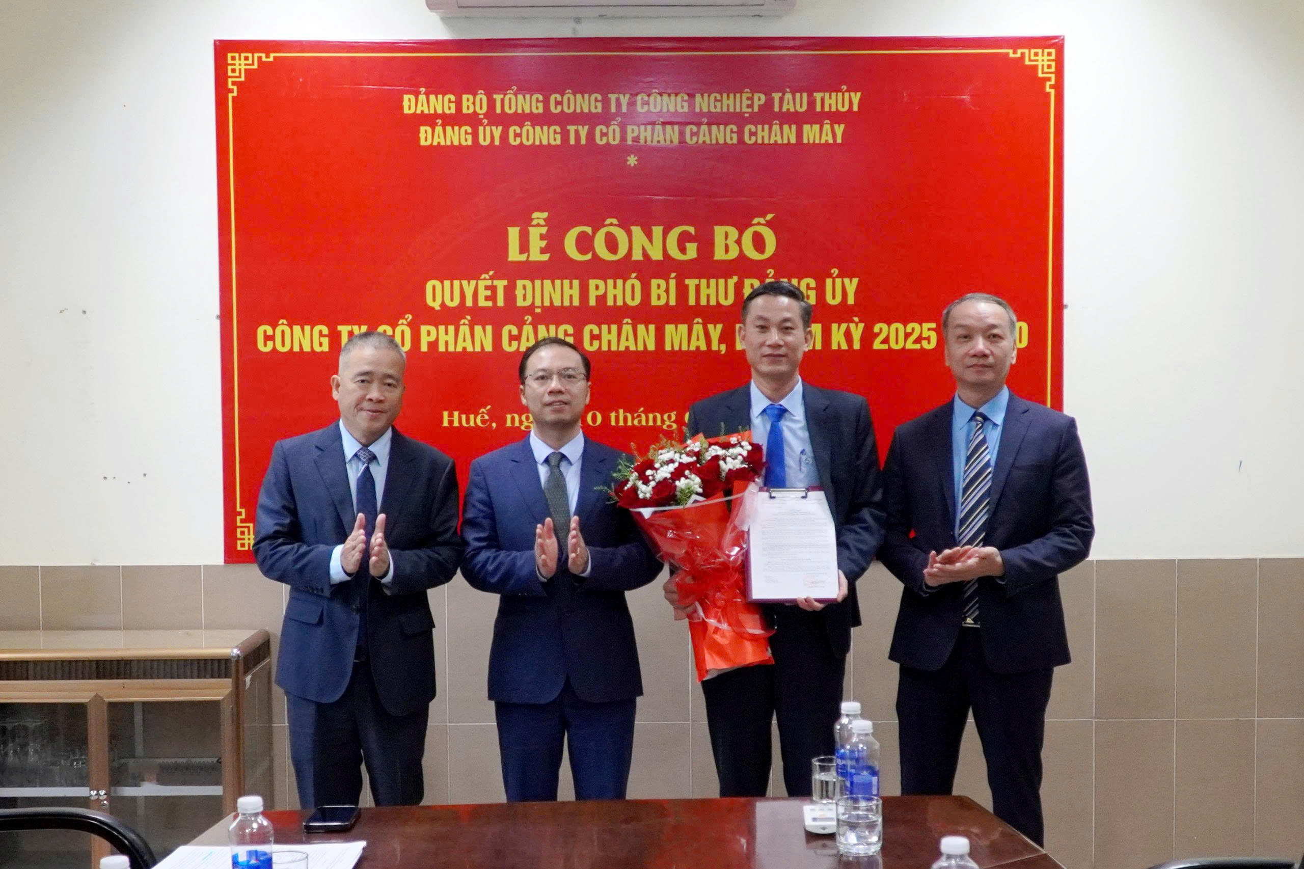 Các đồng chí Lãnh đạo Tổng Công ty; Lãnh đạo Cty CP Cảng Chân Mây trao quyết đinh về công tác cán bộ cùng ngày