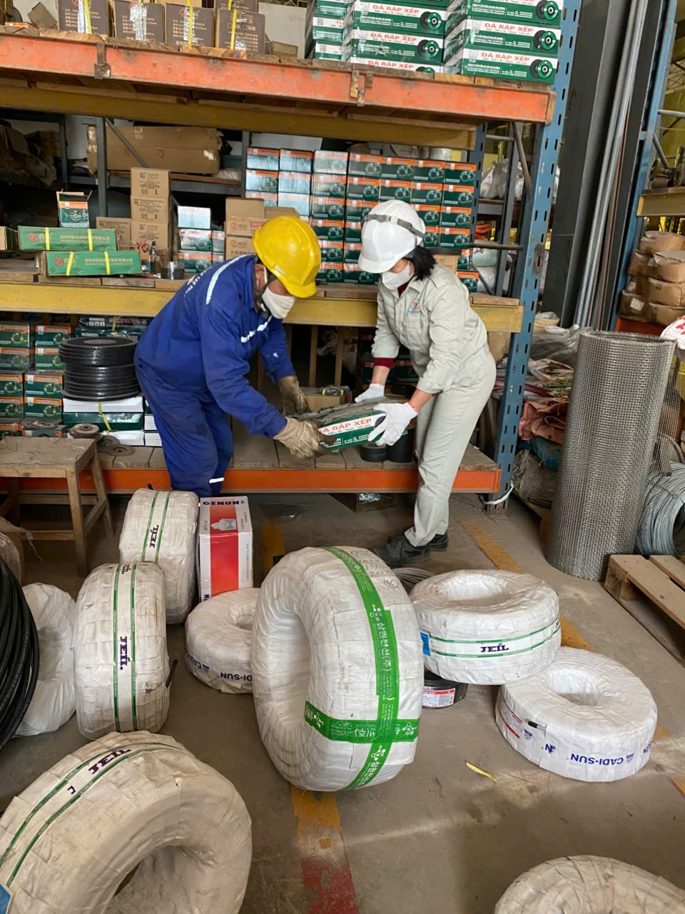 Nữ Công nhân lắp ráp hệ thống điện ở tàu đóng mới.