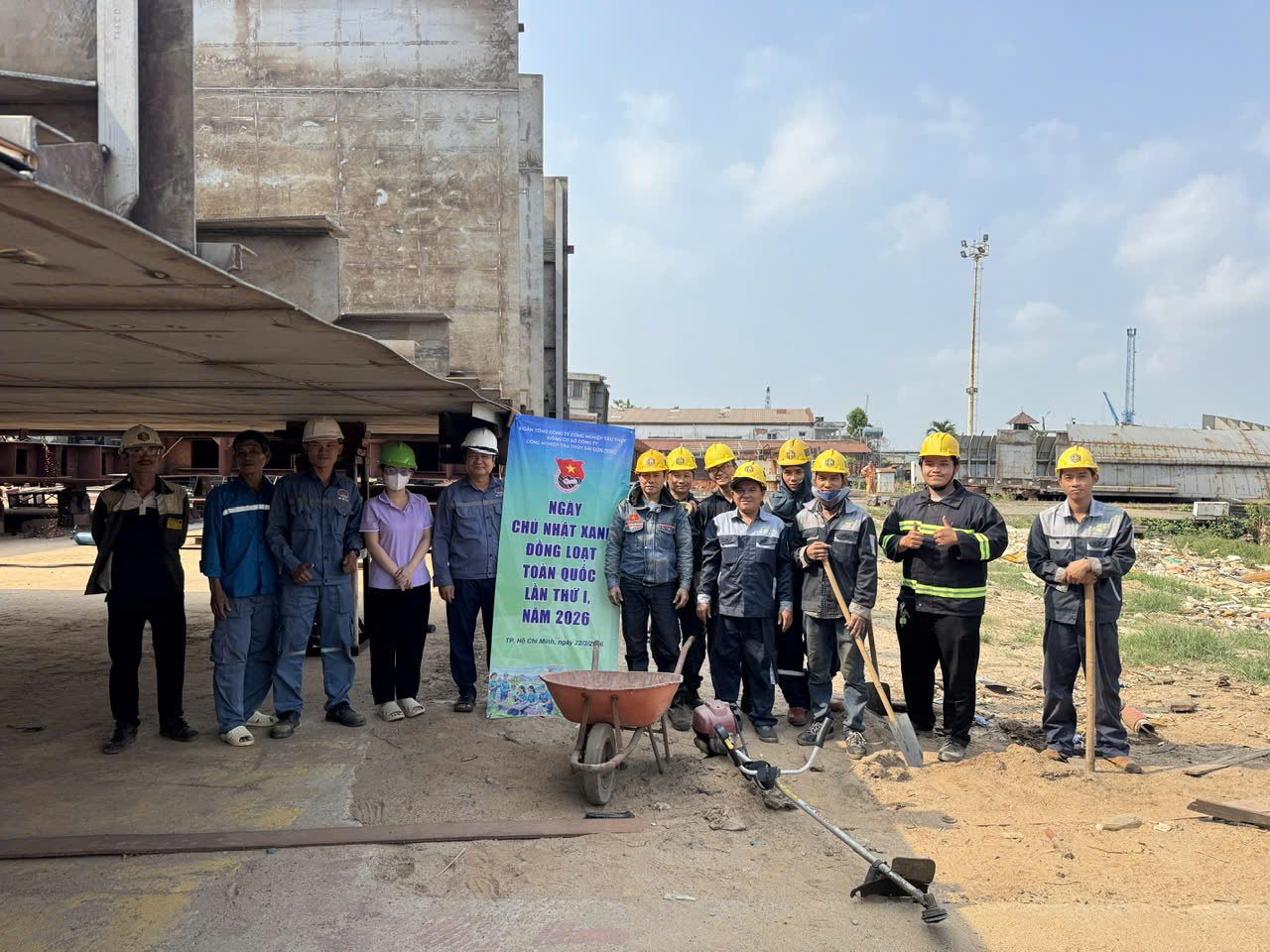 Bên cạnh đó, các hoạt động vì môi trường tiếp tục được triển khai sâu rộng. Chi đoàn cơ sở Công ty TNHH MTV Đóng tàu Phà Rừng và Đoàn cơ sở Công ty Cổ phần Cảng Chân Mây; Đoàn cơ sở Công ty Công nghiệp tàu thuỷ Sài Gòn đã tổ chức ra quân “Ngày Chủ nhật xanh” lần thứ I năm 2026, thu hút đông đảo đoàn viên thanh niên tham gia với các phần việc như vệ sinh môi trường, thu gom rác thải, chỉnh trang cảnh quan đơn vị, góp phần xây dựng môi trường làm việc xanh – sạch – đẹp.