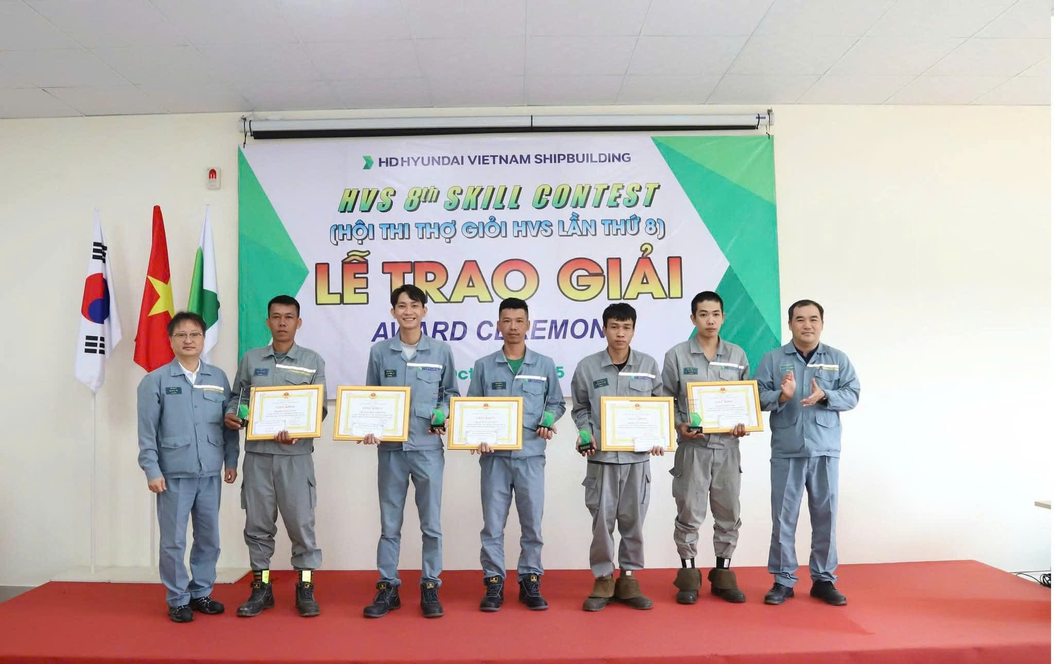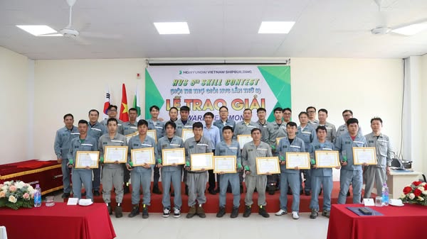 Sáng ngày 10/10, Công ty TNHH Đóng tàu HD Hyundai Việt Nam (HVS) đơn vị liên doanh của Tổng Công ty Công nghiệp tàu thủy (SBIC) đã tổ chức lễ bế mạc và trao giải Hội thi Thợ giỏi HVS lần thứ 8 năm 2025 tại Trung tâm đào tạo.