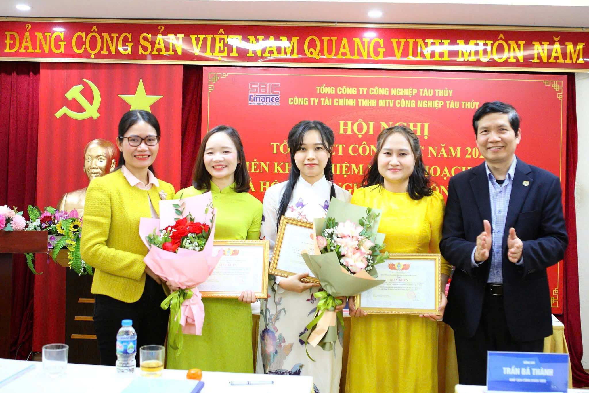 Đồng chí Trần Bá Thành - Chủ tịch Công đoàn Tổng Công ty tặng giấy khen cho đoàn viên công đoàn xuất sắc